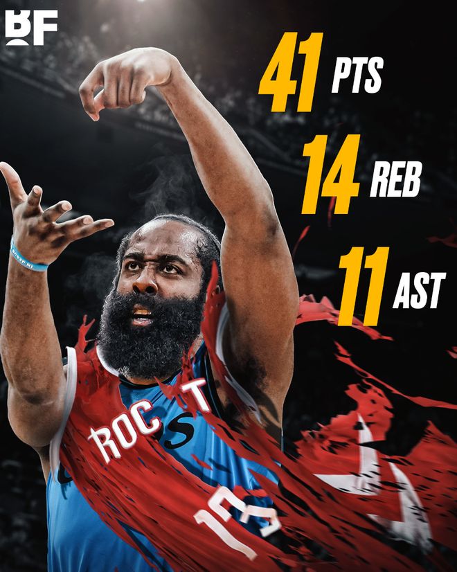 这场比赛36岁的哈登一战创造多项纪录: